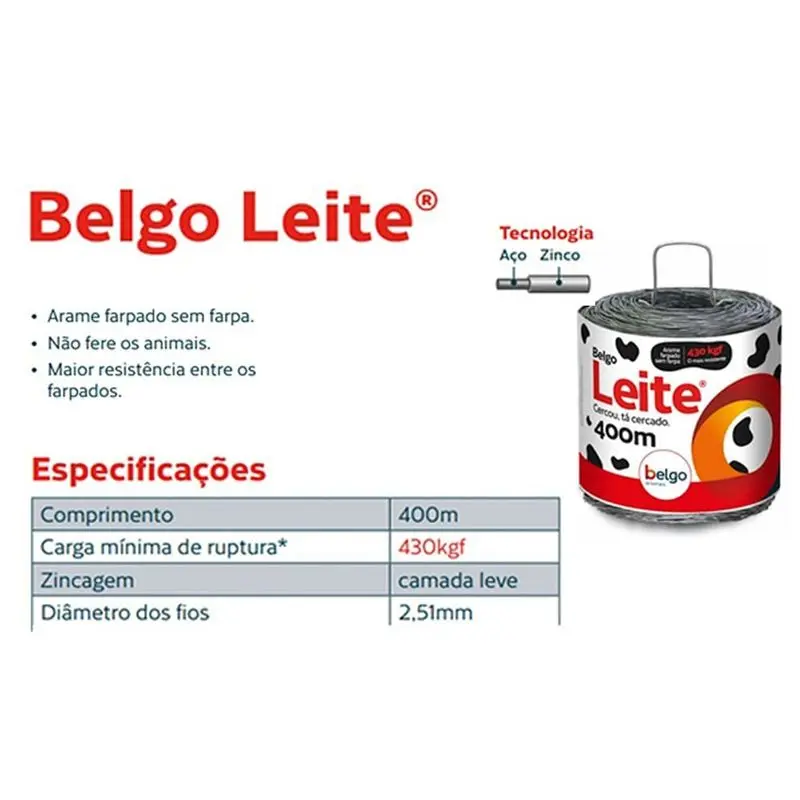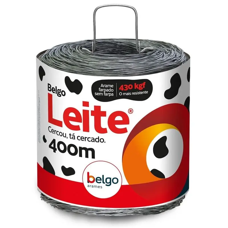 Revolucione os cuidados com seu rebanho leiteiro ao usar o Arame Farpado Sem Farpas Belgo® Leite 400 m, com suporte para 430 kgf. Compre online!