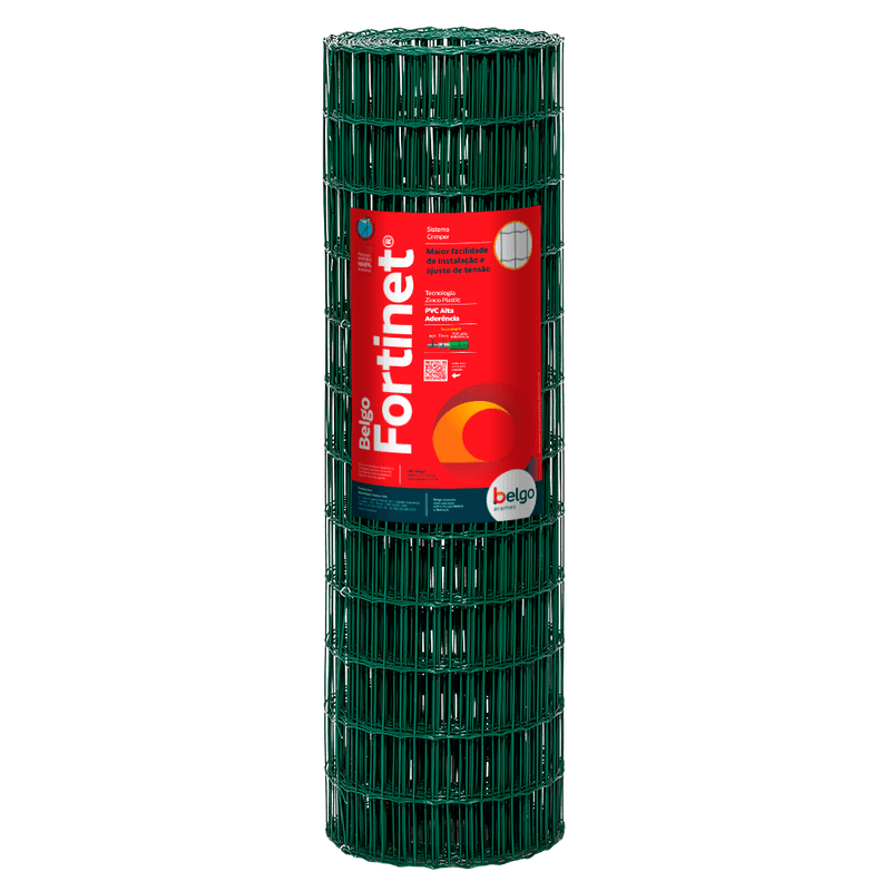 A Tela Belgo Fortinet Family ® (Fio 2,50mm – 5 x 10cm 1,22 x 25m) tem acabamento com PVC de alta aderência, o que protege os arames da corrosão e aumenta a durabilidade e vida útil do produto.
